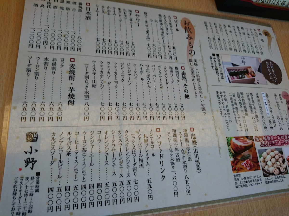 Sushi Ono Menu