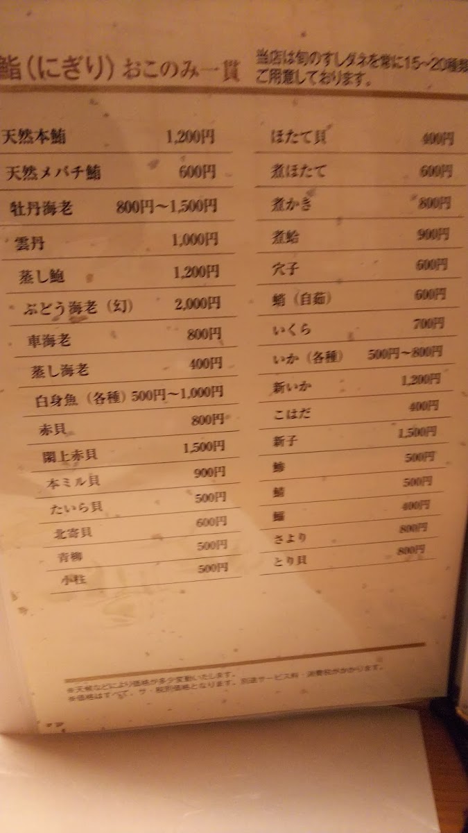 Sushi Ono menu gallery